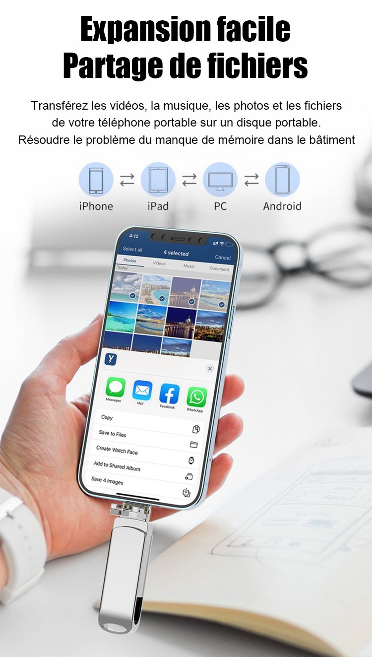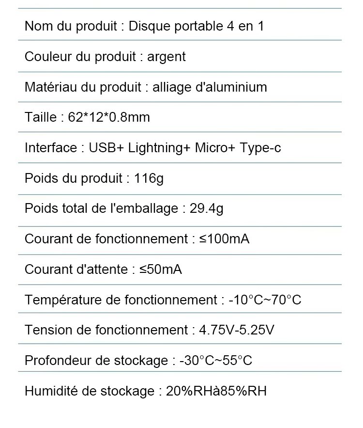 Disque portable d'extension de téléphone mobile 4-en-1